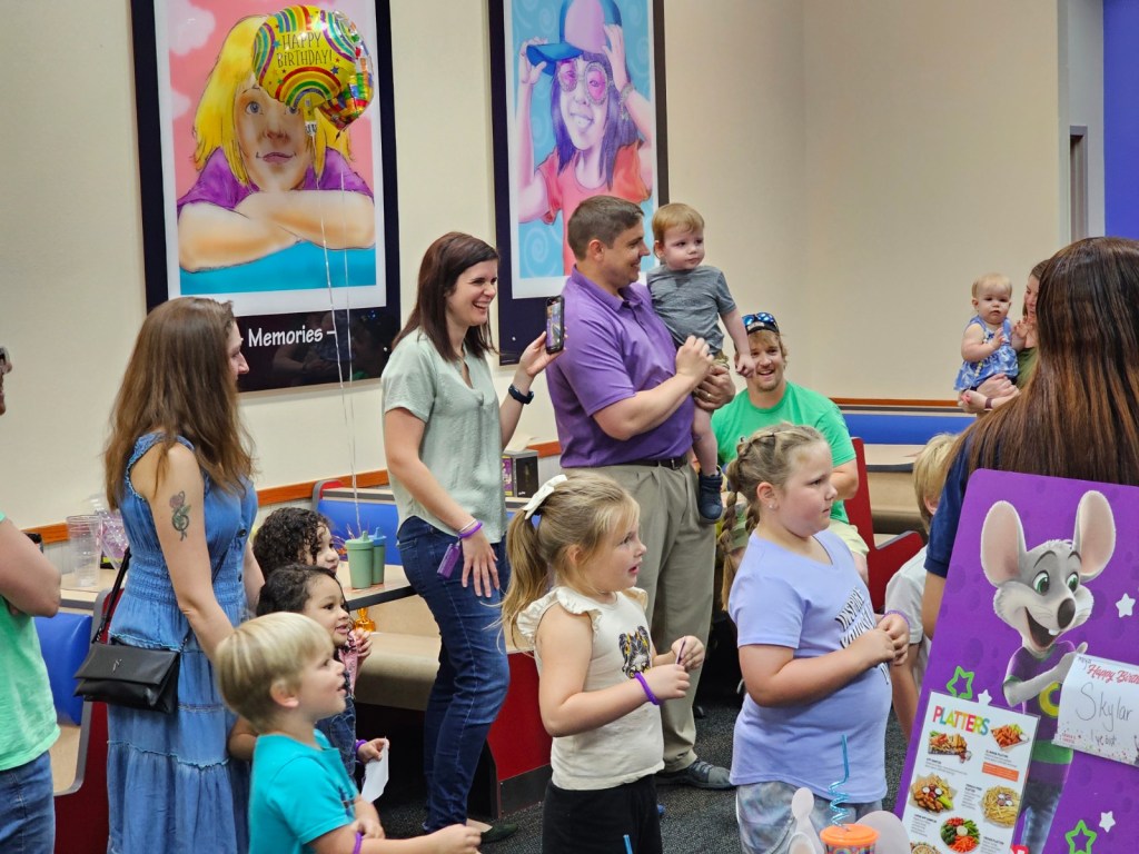My grandson, Tommy, turned 2 on Friday, June 2nd. His Mom, my daughter Katie and her husband, Dan and Tommy’s sister Eliana, all came over for a small celebration with cake and ice cream. On Saturday, June 10th, Tommy had his big birthday party at Chuck E. Cheese in Waldorf and his cousin Michael attended with Aunt Marianne and Uncle James, Uncle Mike, Uncle Stephen and grandparents and lots of friends. Parties at Chuck E. Cheese are always fun, because the children love playing the games, winning prizes and eating pizza and dipping dots. I baked a Funfetti cake for Tommy and he enjoyed his celebration.
