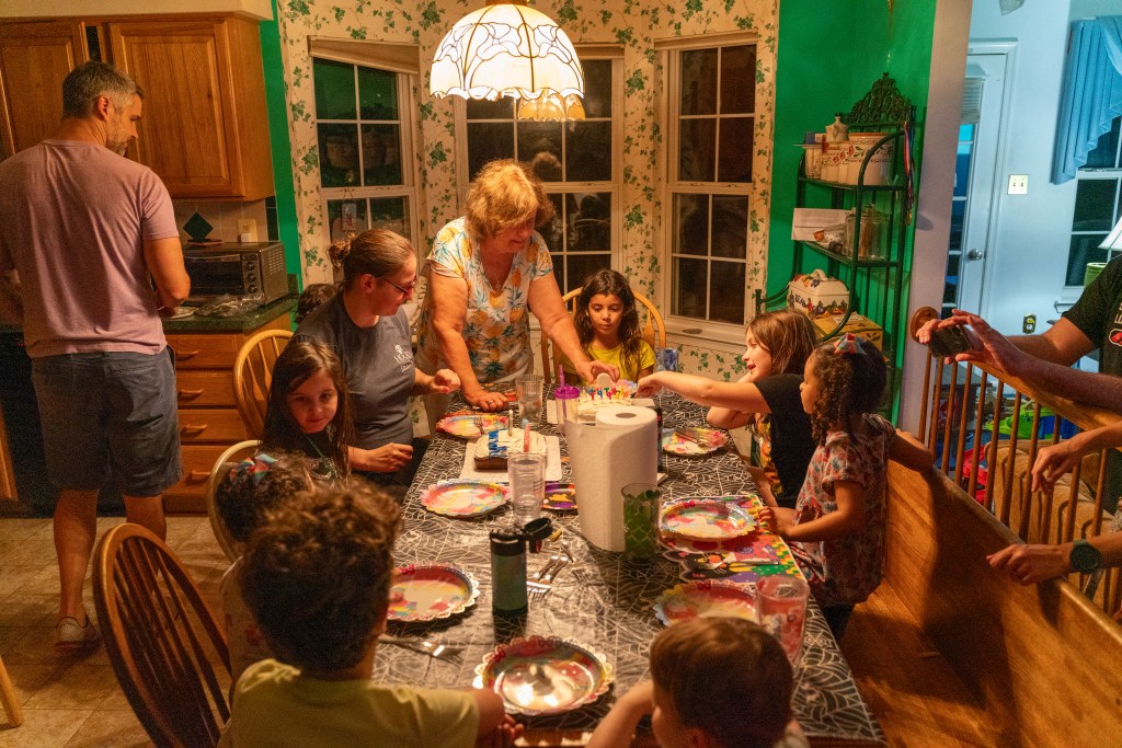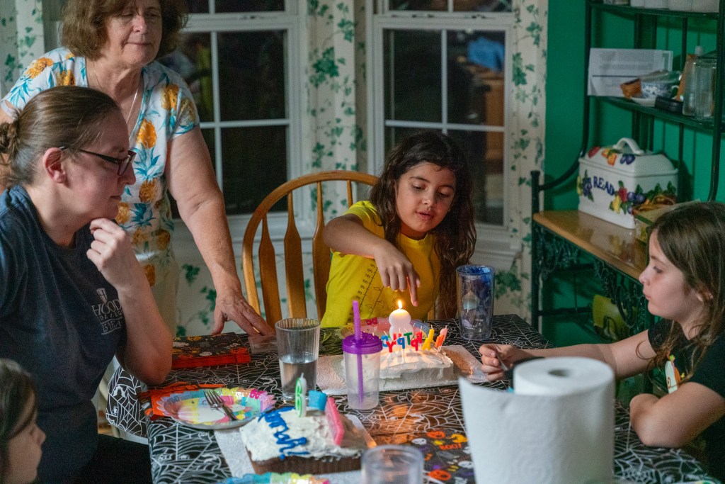 Afterwards, we returned to my house where Ellie’s three cousins Ari, Nora and Hannah were there with their parents. Their dads were watching the Philadelphia Eagles football game vs. the Washington Commanders. A friend of Ellie’s and Michael’s moms, Bethany returned to continue the festivities with her two girls, Cadence and Melody. The cousins and Cadence and Melody busied themselves taking a walk around the neighborhood and playing in the basement. After a dinner of chicken nuggets, pasta and Shepherd’s pie we all sang “Happy Birthday” to Ari who had a vanilla cake and Hannah who had a chocolate cake. Some of the cousins also opted for ice cream. Each of the children were given two Halloween cookies to decorate to take home with them. They all left, happy and tired.
