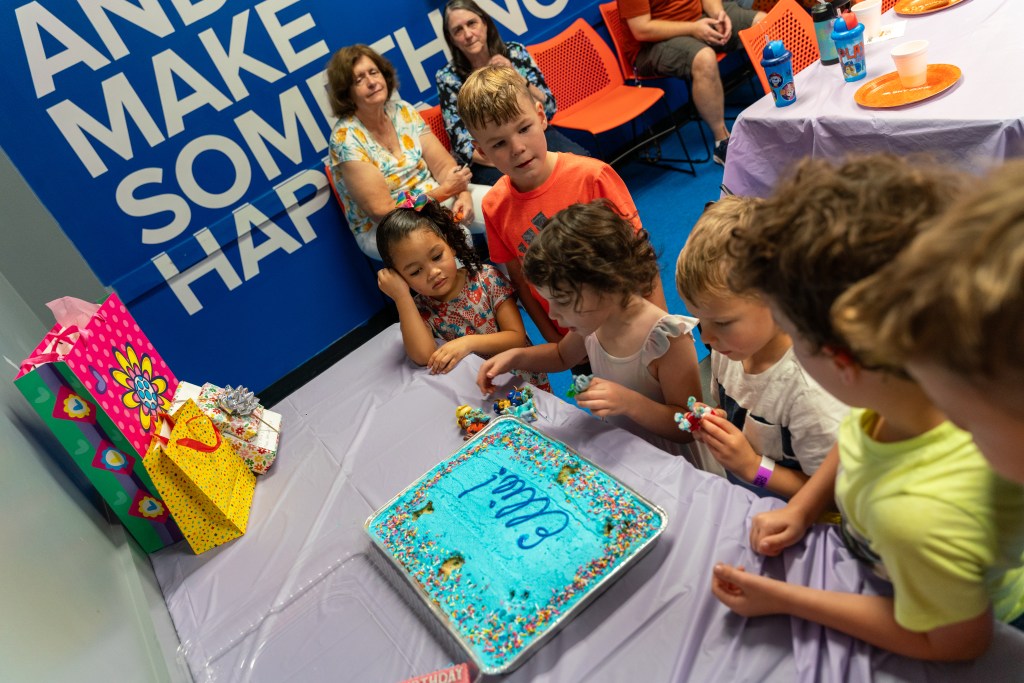 Always a great time celebrating my granddaughters’ November birthdays. They were all born on even days in November and this year they all have even numbers for their ages. Even though their birthdays are in November we had some pre-birthday fun on Sunday, October 29th. Ellie’s Mom and Dad invited her cousins and friends to Skyzone in Waldorf for a bouncing good time with a lunch of pizza and cake. The kids really liked Skyzone and being active.