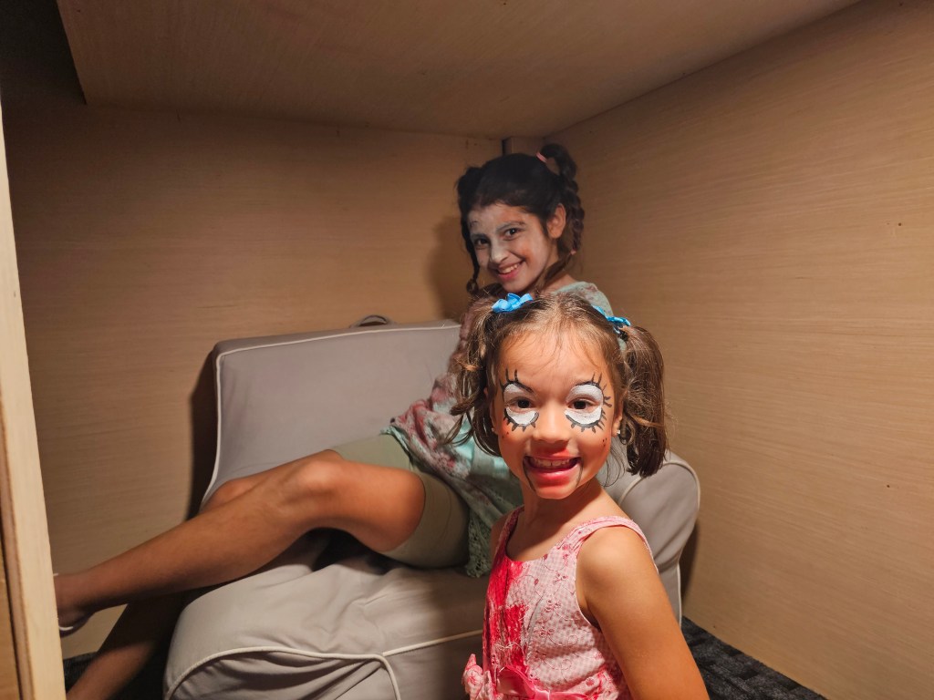 Another son, Tom, and his wife Marissa, accompanied their two daughters Ari and Cami and had awesome costumes. Tom and Marissa and Ari were zombies, while Cami was a scary doll. Uncle Mike, Tom’s brother, went up to their home in Alexandria to join them and took some great pictures.