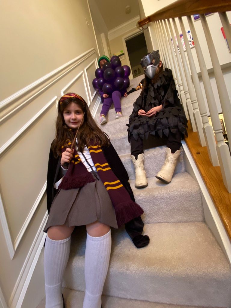 My oldest son John, and his wife Georgette’s two girls Nora 8 and Hannah 6 3/4, got together with some friends and went trick or treating in their neighborhood. Nora was dressed as Hermione from Harry Potter and Hannah was an owl. They also had a fun night.