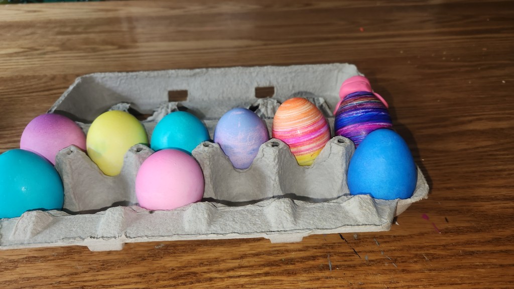 I was excited that all my “chicks” were coming with their families to celebrate Easter together. Five of the seven grandchildren were able to attend and participate in our annual Easter egg hunt, dye some eggs, play a little baseball out back and have some fun in the basement. The cousins enjoy each other’s company when they are able to get together.
