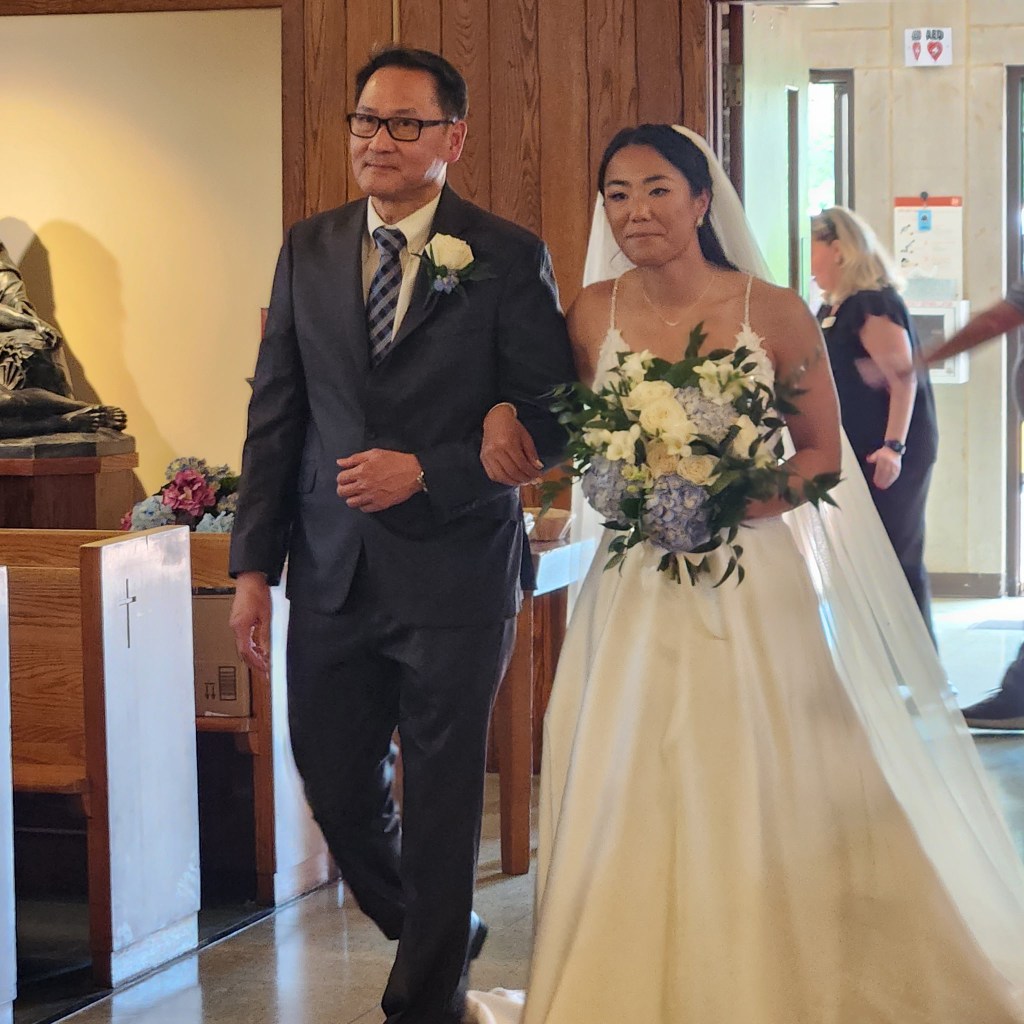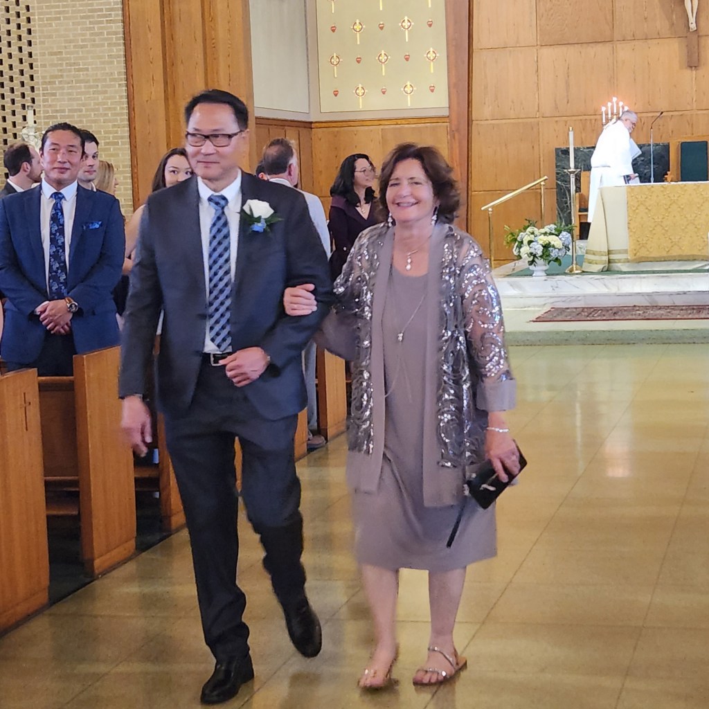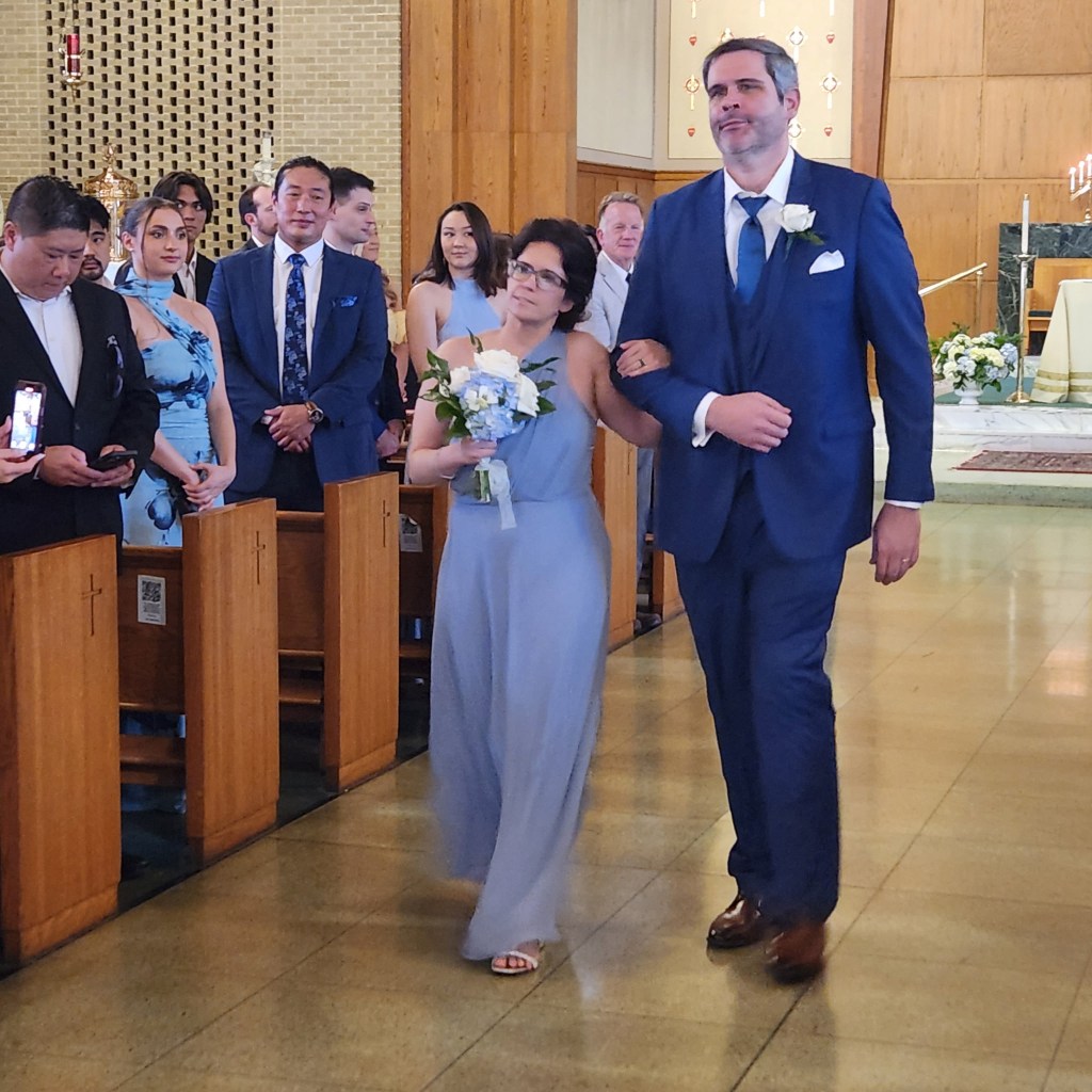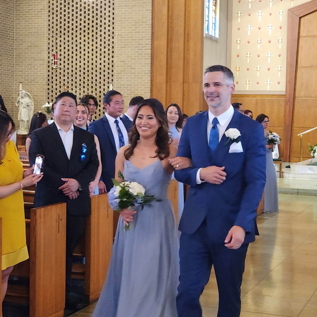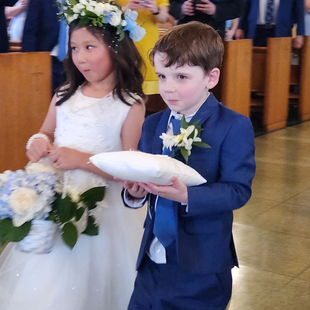 Saturday, May 3rd, was a very special day for our family, especially for my youngest son, Stephen. Stephen was marrying Elisabeth, the beautiful woman who captured his heart at St. Jane Frances De Chantal Church in Riviera Beach, Maryland. All their months of planning became an awesome reality as Stephen’s brothers, Michael (best man), John and Tom and Elisabeth’s brother Jon acted as groomsmen. Elisabeth’s sister, Catherine, was her maid of honor and her best friend, Jessica, was one of the bridesmaids along with Stephen’s sisters Marianne and Katie. Madeleine, Elisabeth’s cousin Sophia’s five year old daughter, served as the flower girl and Tommy, Katie’s almost four year old son, was the ring bearer.
